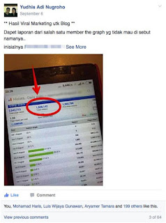 Bila dari 1000 orang yg melihat post kita, ada 1% yang meng-klik (CTR/click through rate), maka ada 10 orang yang klik.